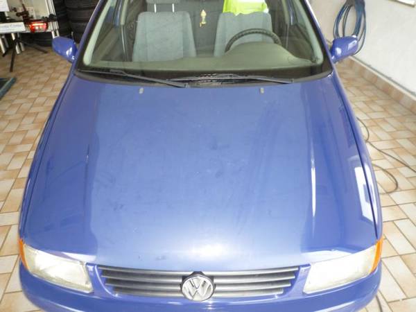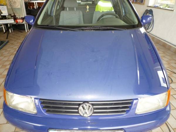 Ein sehr alter Matter Lack eines VW Polos.Als vorführ Objekt an der Motorhaube ausen Polliert und in der unbehandelt.